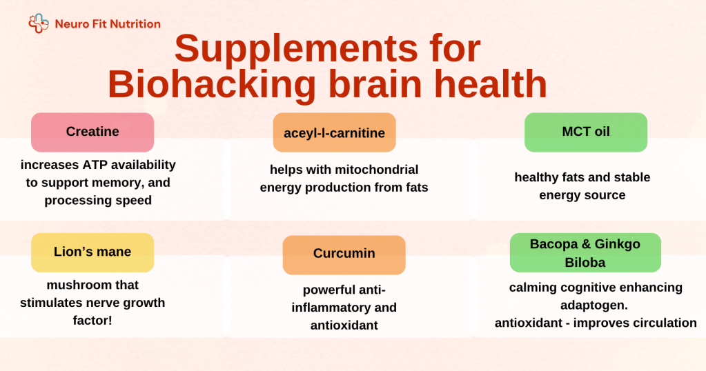 - Creatine → ATP production for brain energy and mental stamina